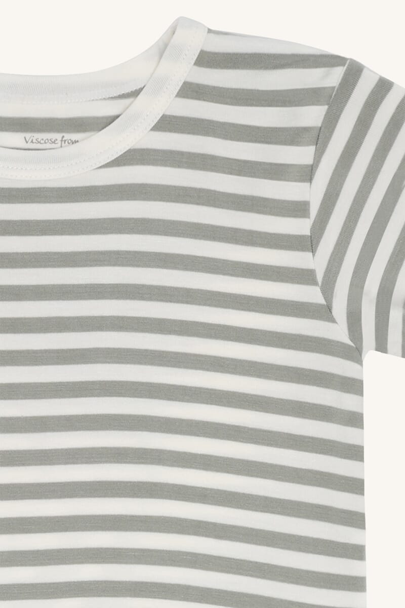 Kortermet genser i svært myk og behagelig kvalitet. God passform. Øko-tex-sertifiserte bambusfibre. Lekre striper i grønt/hvitt.