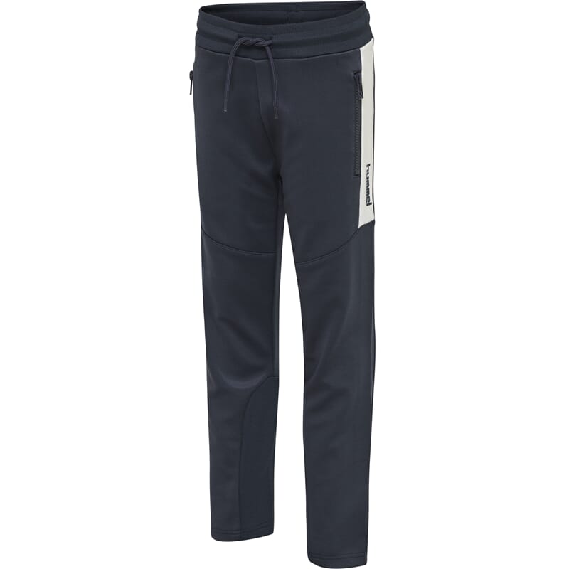 Klassiker fra Hummel i slitesterk glatt kvalitet. Mørkeblå med hvite parti på sidene. Lommer med glidelås foran. God passform med rette ben. Elastikk og snøring i midjen.