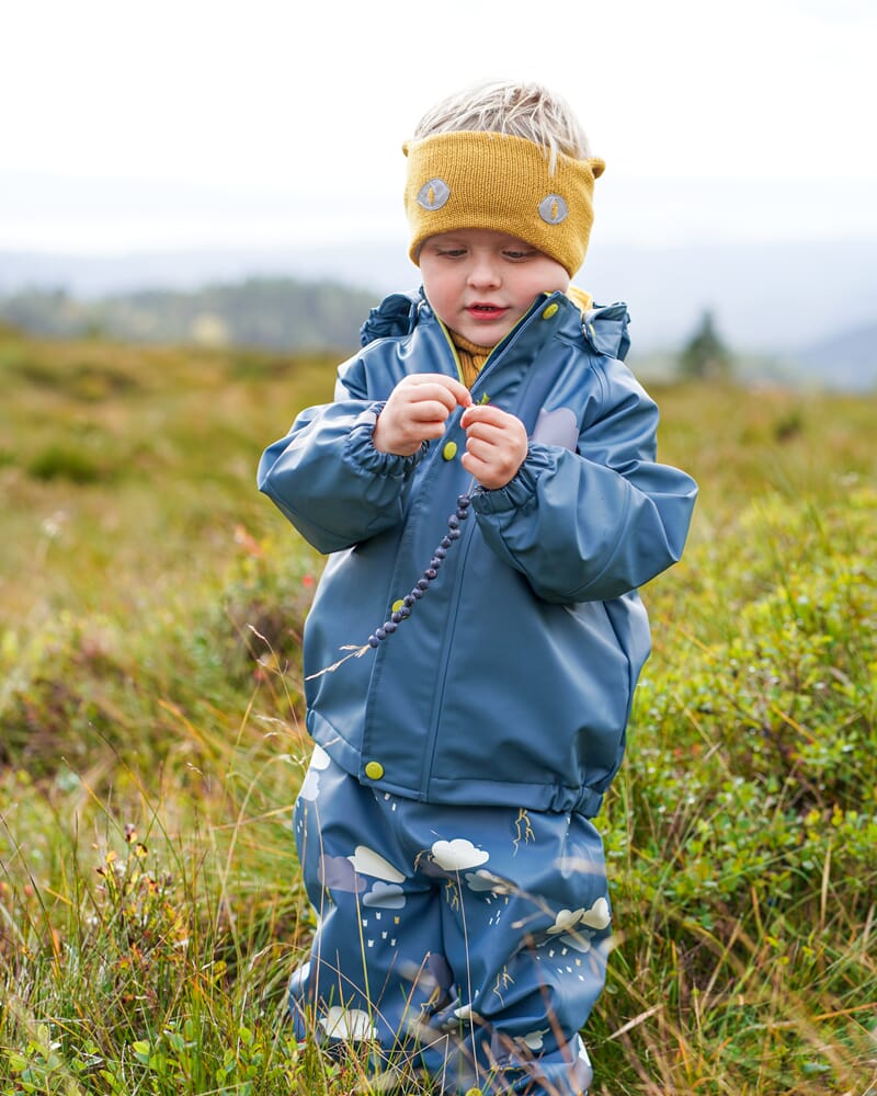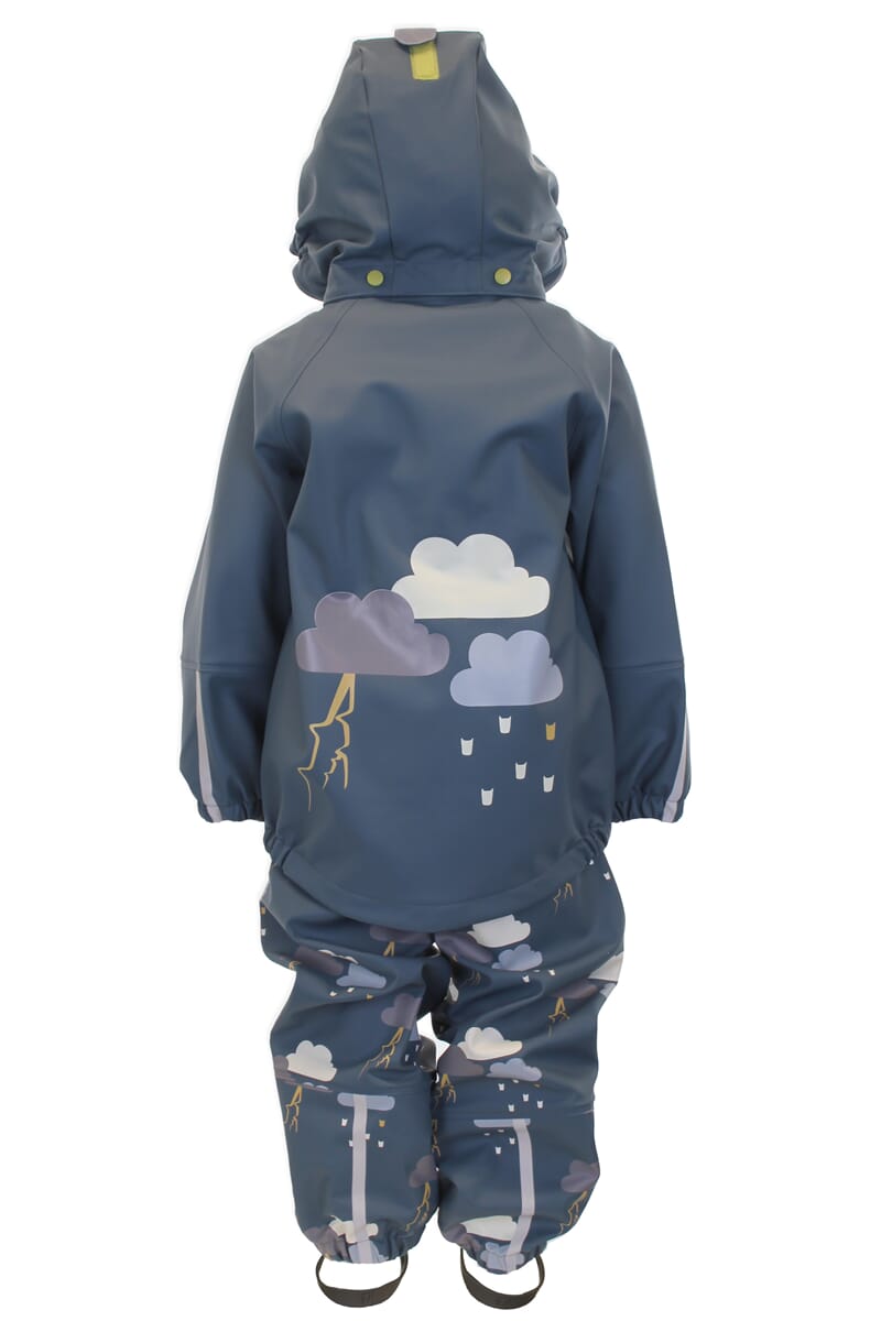 Solid, ekstremt slitesterkt regntøysett med jakke og bukse med seler. Regntøyet har børstet innside som gjør det behagelig å ha på. Solide fotstrikker, reflekser på armer og ben, sveisede sømmer, anti-oppsugingsstoff på armer og bein og avtagbar og regulerbar hette. Vannsøyle på 30.000 mm. Regntøyet har blitt en favoritt hos både barn, foreldre og barnehager.