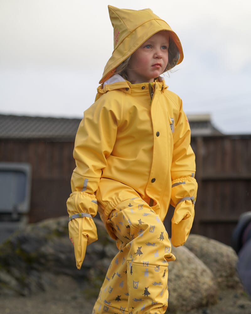 Solid, ekstremt slitesterkt regntøysett med jakke og bukse med seler. Regntøyet har børstet innside som gjør det behagelig å ha på. Solide fotstrikker, reflekser på armer og ben, sveisede sømmer, anti-oppsugingsstoff på armer og bein og avtagbar og regulerbar hette. Vannsøyle på 30.000 mm. Regntøyet har blitt en favoritt hos både barn, foreldre og barnehager.