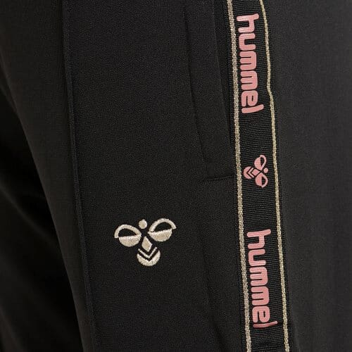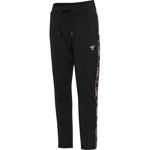 Klassiker fra Hummel i slitesterk glatt kvalitet. Lekker svart med rosa og gullfargede detaljer. God passform med rette ben. Elastikk og snøring i midjen.