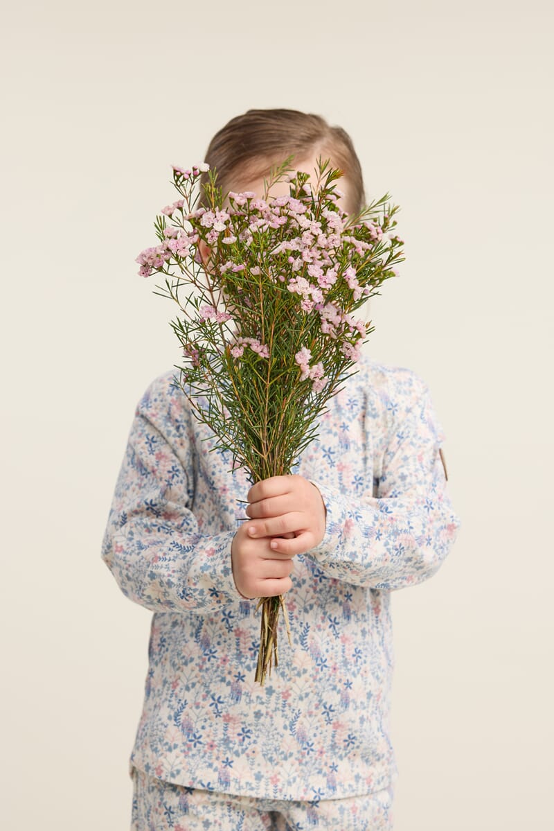 Klassiker fra Gullkorn Design. Deilig myk og stretchy bomullsjersey-kvalitet. Fin design og passform. Knapping på skulder. Nydelig sammen med villvette bukse i samme mønster.