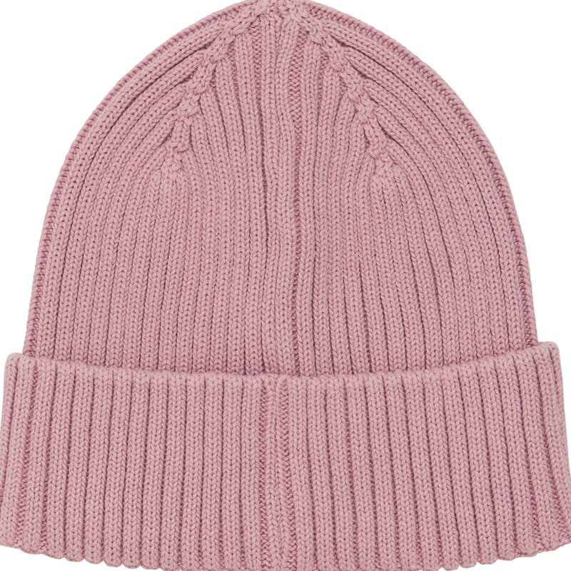 Ensfarget strikket beanielue i bomull med god passform. '