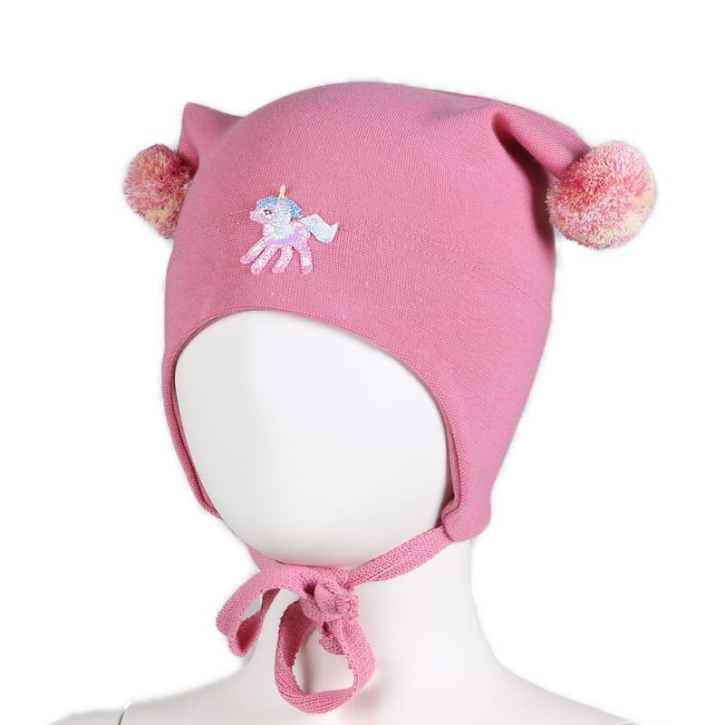Klassisk fasong fra Kivat. God passform. Snøring under haken. Skinnlapp med Kivat-logo i front. Vindstopper ved ørene. Lekker rosa med søt applikasjon av enhjøring.