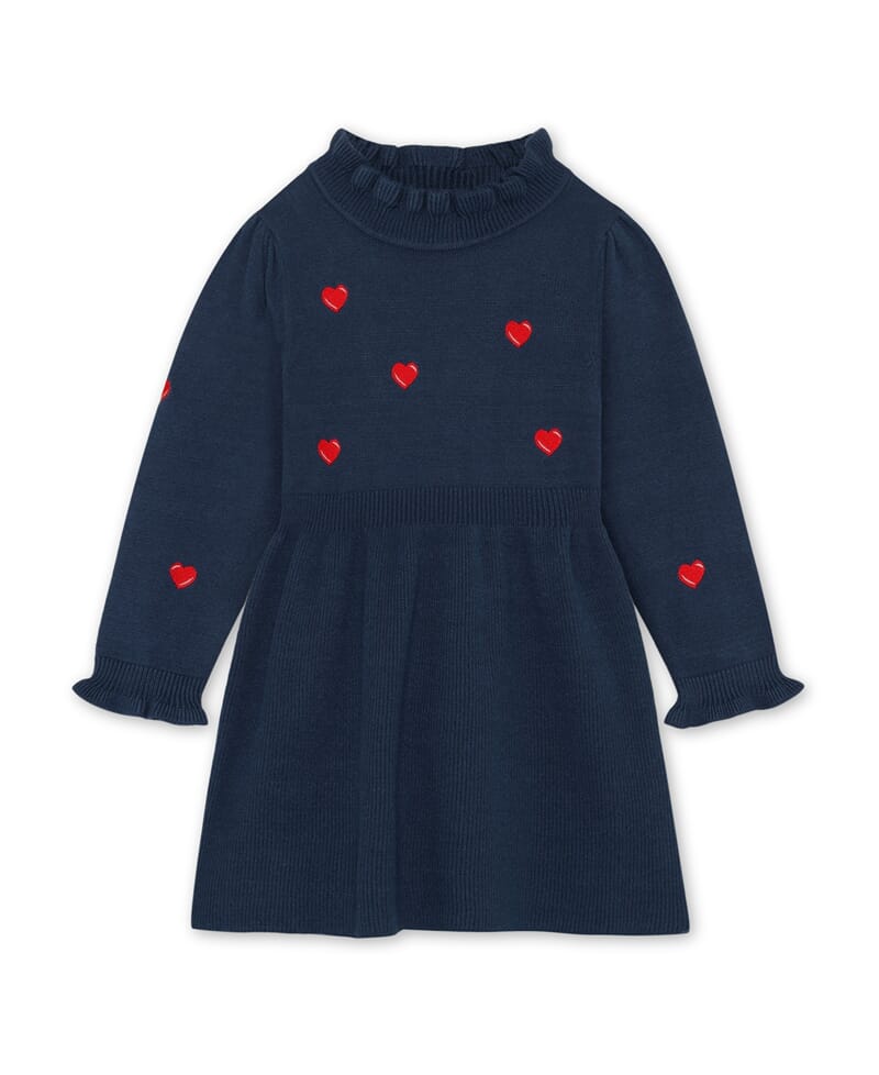 Kjole i myk og behagelig strikk i viscose-kvalitet. Lekker blåfarge og flotte detaljer med sløyfer og rysjer.