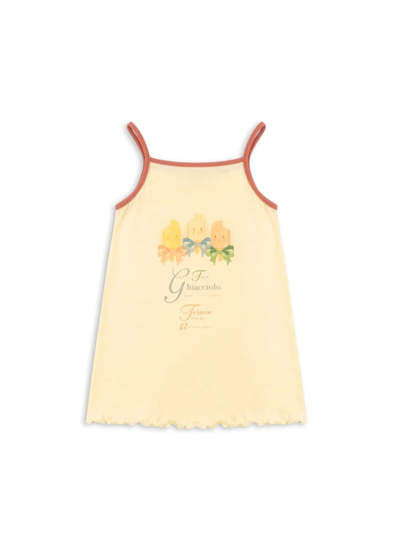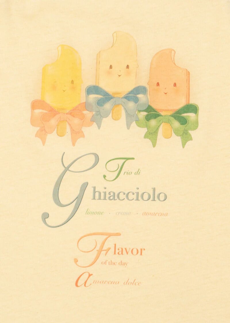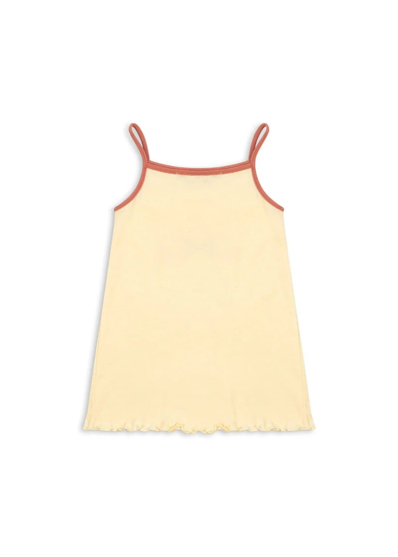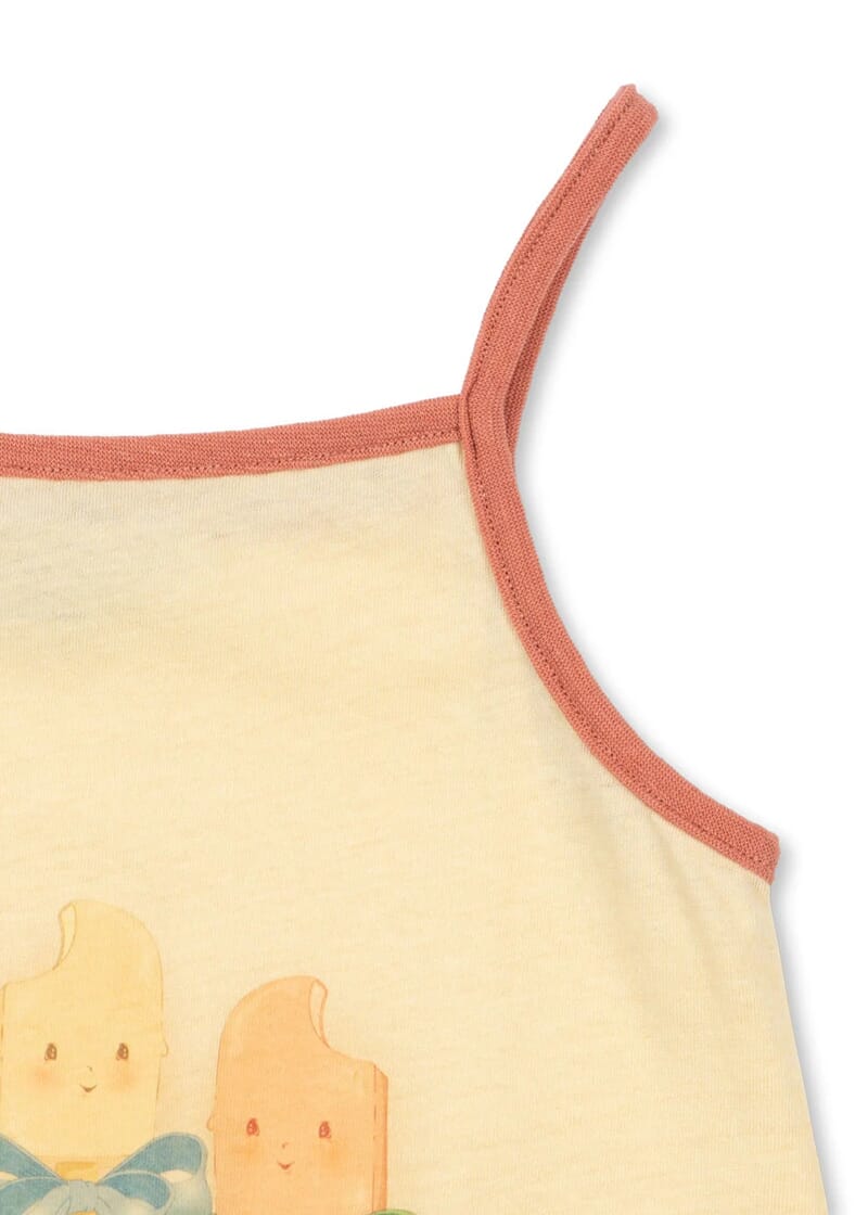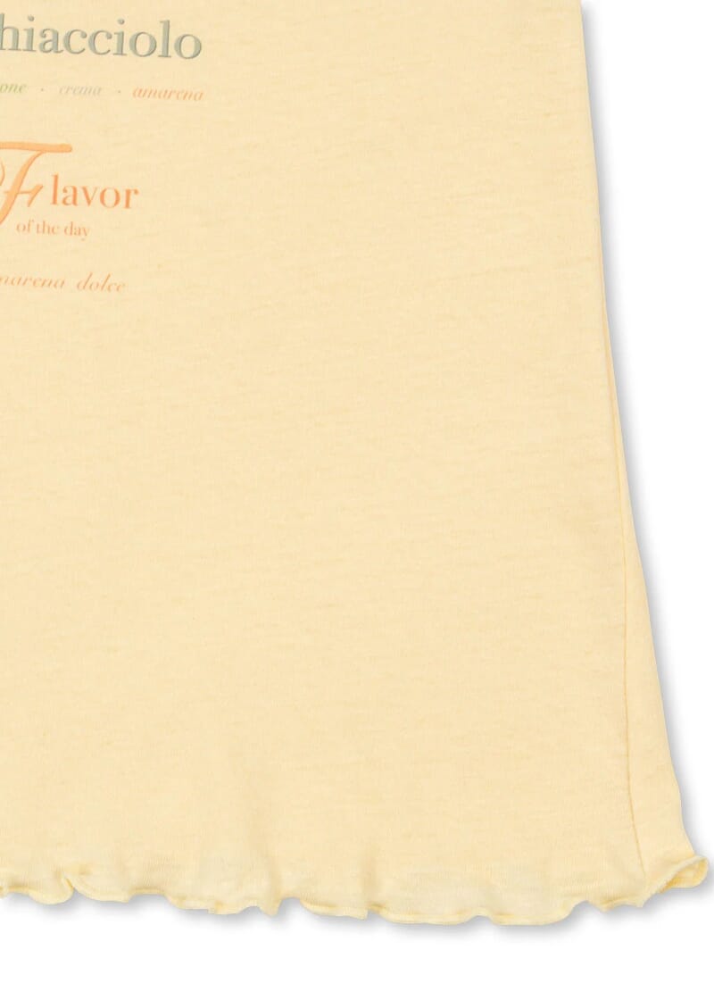 Pastellgul farge med søtt print i front.
