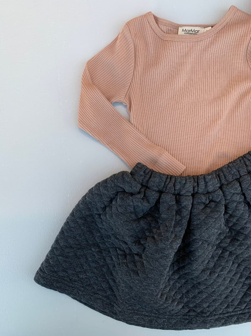 Ensfarget rutemønstret skjørt i svart kraftig stoff. Flott enkel passform.