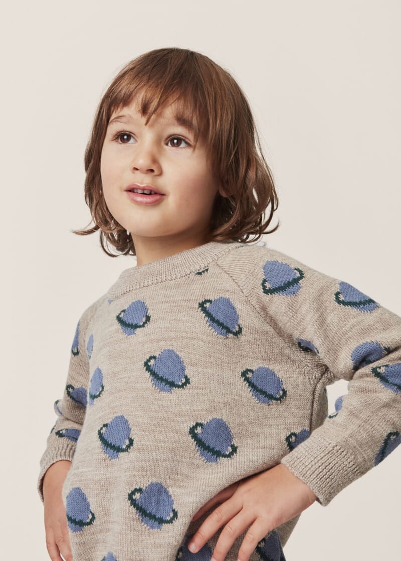 Strikkegenser i myk og god ullkvalitet. Stilig print med planeter.