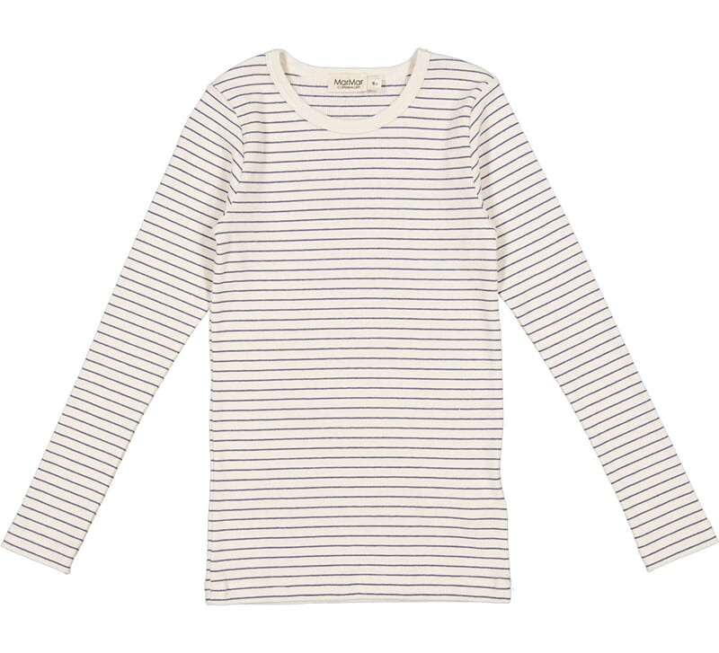 Lekker stripete genser fra MarMar i deilig og myk modalkvalitet. Rib. Blå striper på lys bakgrunn.