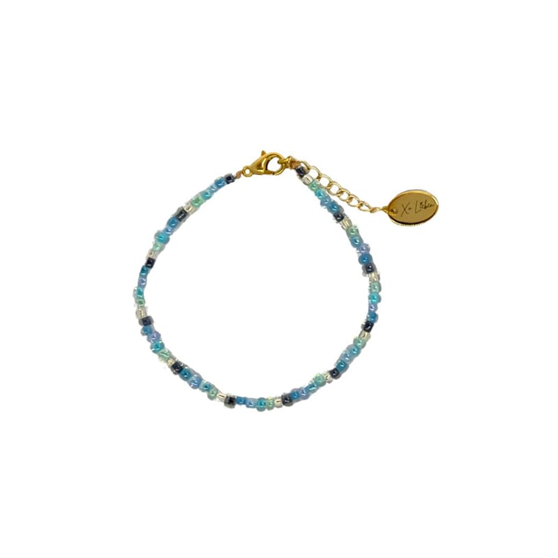 Kaia armbåndet består av glassperler i fine blånyanser, toppet med en ekte ferskvannsperle. Armbåndet kan justeres fra 16-19 cm. Om du ønsker å matche med den lille, finner du også Kaia armbåndet til barn.