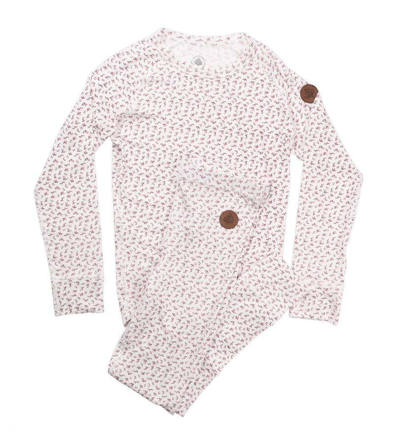 Bambus-sett med nytt design. Deilig myk, komfortabel og stretchy kvalitet. Garantert kløfritt. God passform og ribb i beina. Hvit med rosa detaljer.