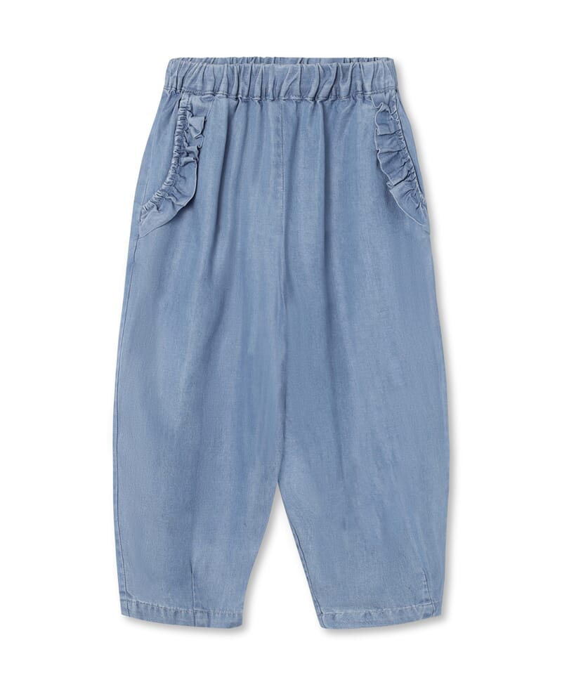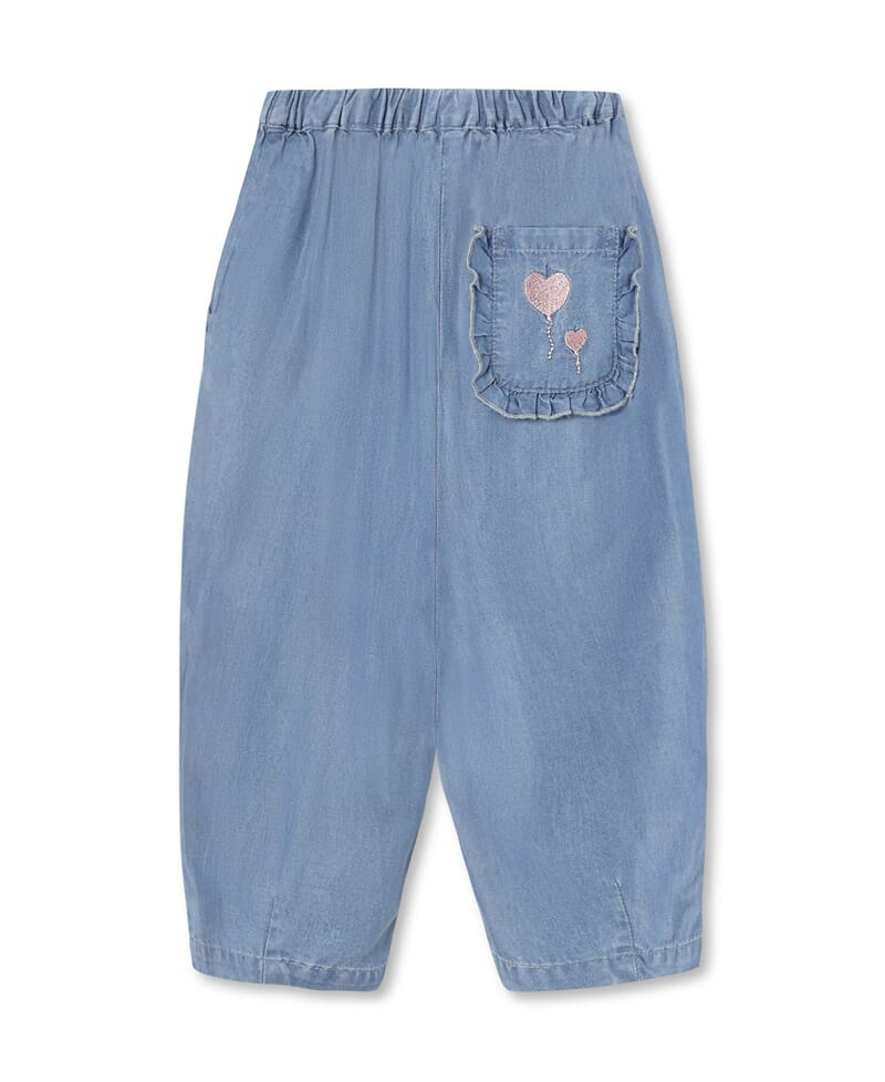 Lekker bukse fra Fliink. Nydelig denimblå bukse, med rysjer framme og fine hjertedetaljer på lommen bak. Passer perfekt sammen med Helene blouse.
