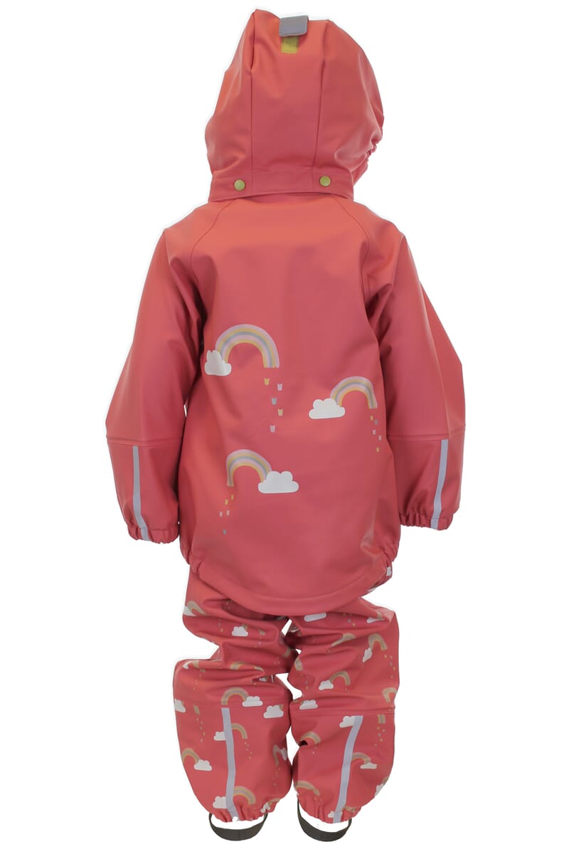 Solid, ekstremt slitesterkt regntøysett med jakke og bukse med seler. Regntøyet har børstet innside som gjør det behagelig å ha på. Solide fotstrikker, reflekser på armer og ben, sveisede sømmer, anti-oppsugingsstoff på armer og bein og avtagbar og regulerbar hette. Vannsøyle på 30.000 mm. Regntøyet har blitt en favoritt hos både barn, foreldre og barnehager.